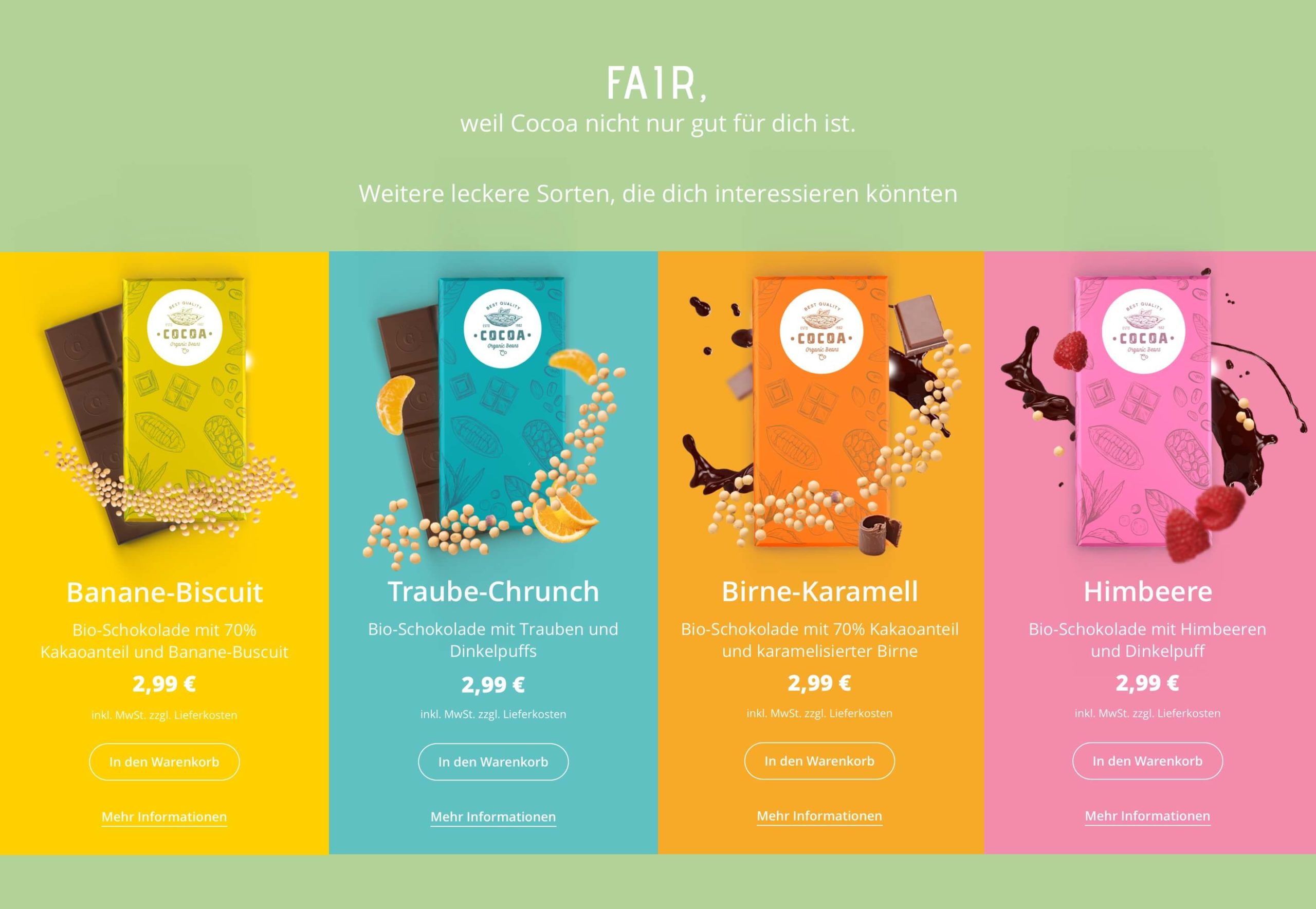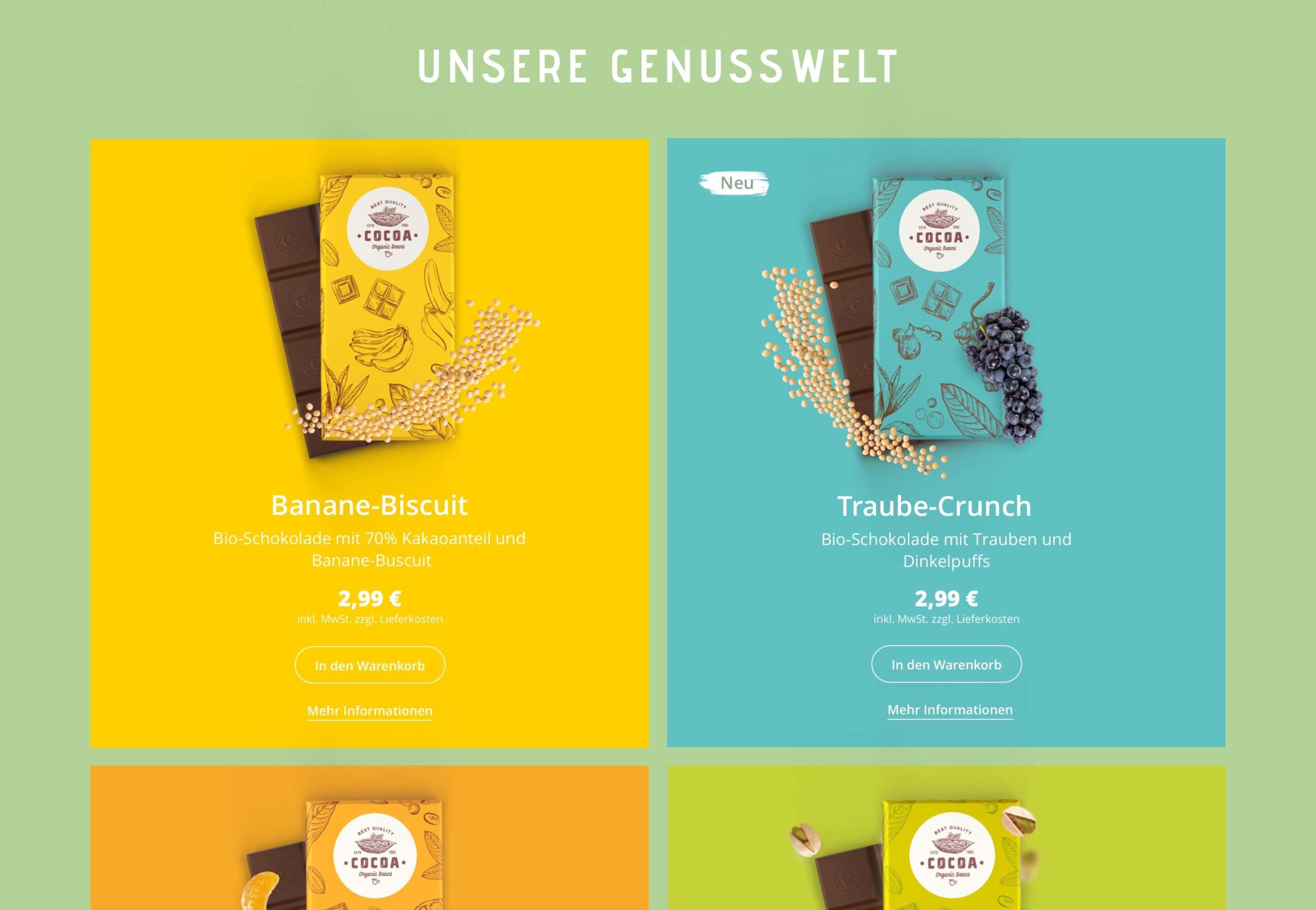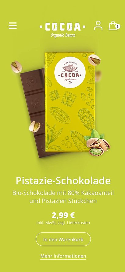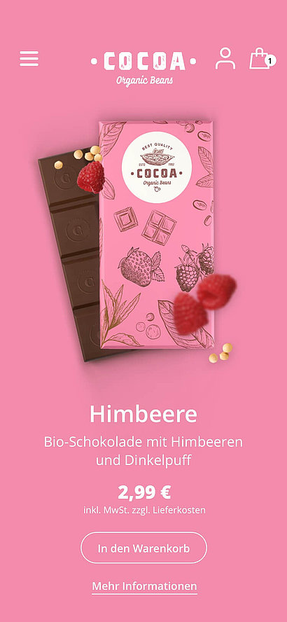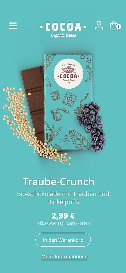 Ein Online-Shop für Genussmittel muss nicht nur die üblichen Anforderungen der Usability erfüllen, sondern vor allem die Sinne ansprechen. Das Geschmackserlebnis soll über visuelle Botschaften greifbar werden. Das Aroma soll sich im Design entfalten und spürbar werden. Die Geschmäcker sind verschieden, doch Cocoa soll die Geschmacksknospen von jedem Besucher anregen und zum Kauf anregen.