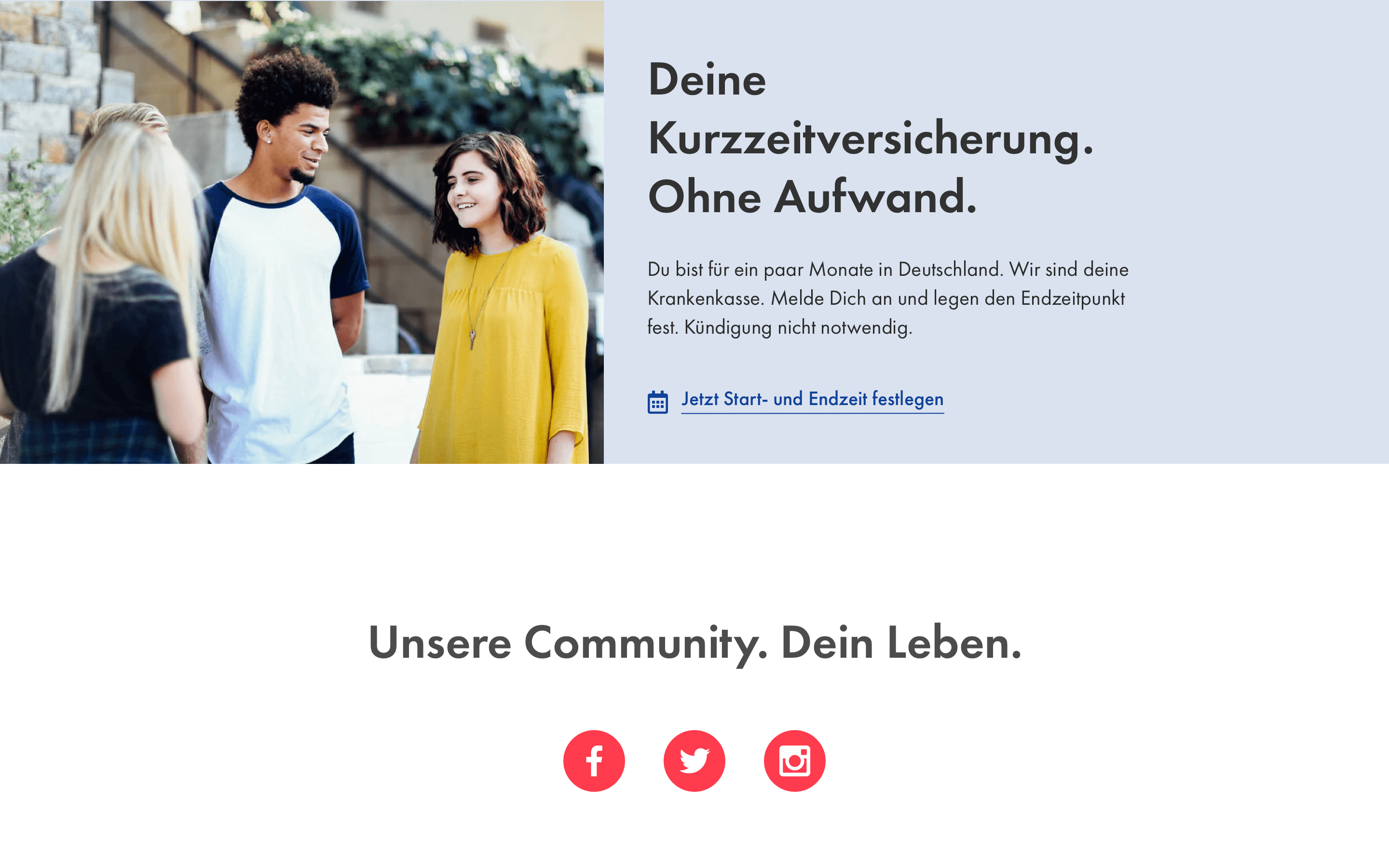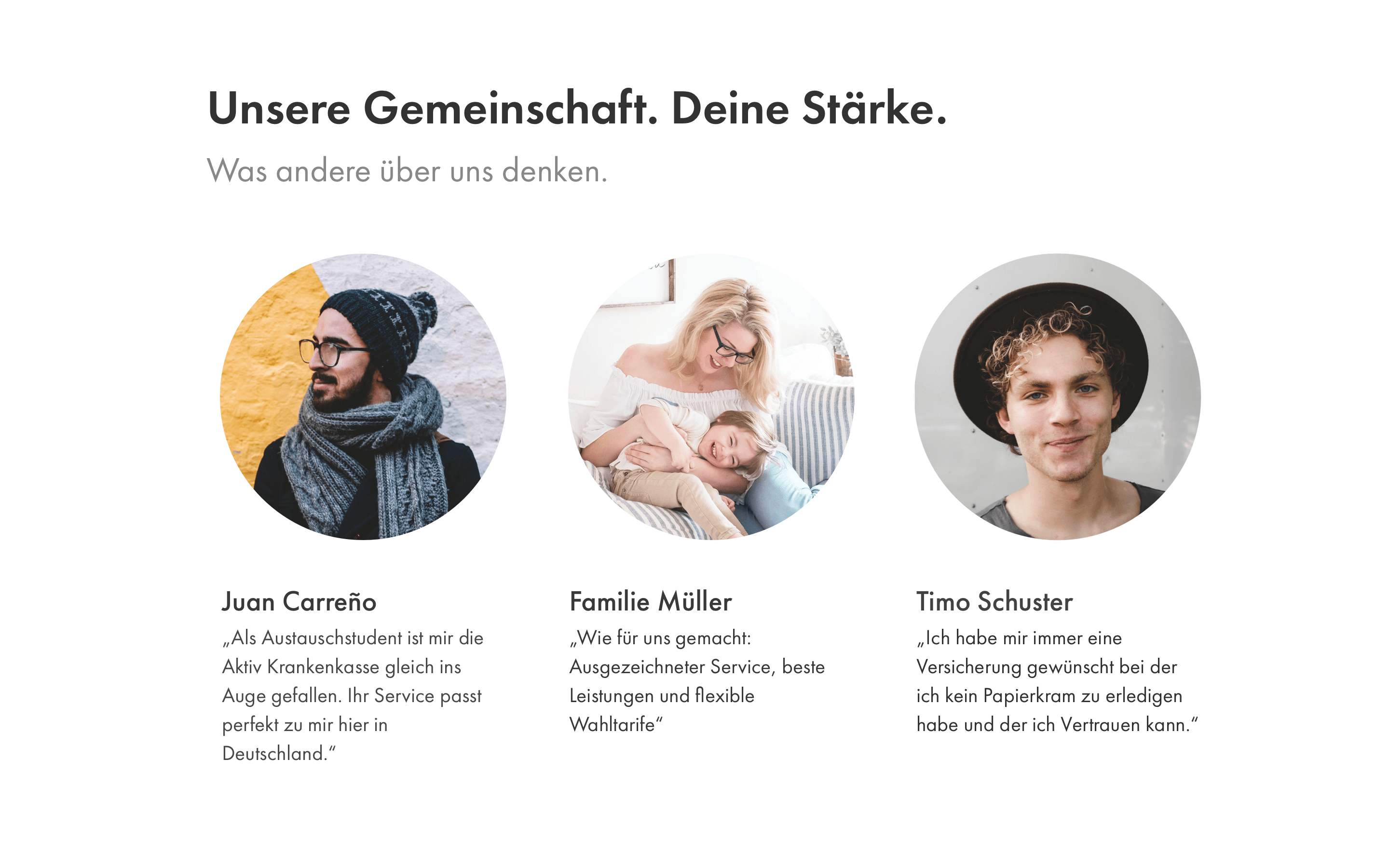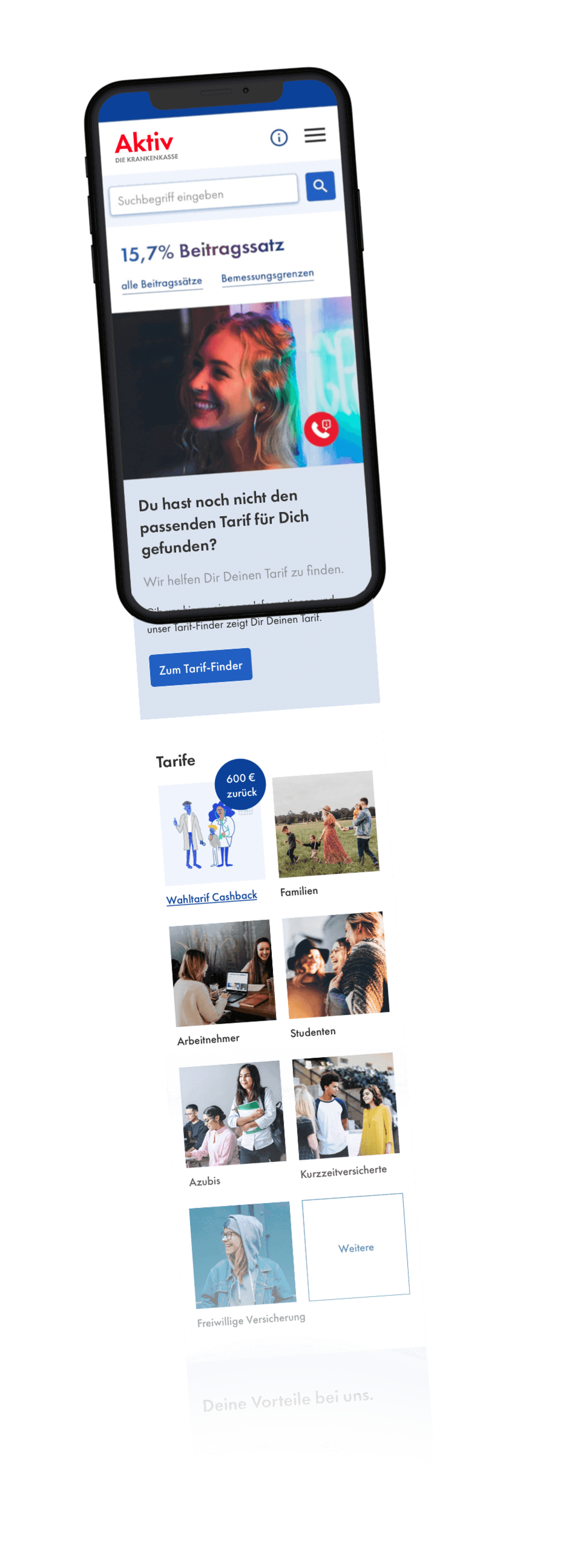 Mit all den Optionen, die den Nutzern verschiedene Einstiegsmöglichkeiten auf der Website eröffnen, um gewinnende Begeisterung zu schaffen, legen wir den Grundstein für eine neue Generation der Krankenkasse. Die Gesundheitsbranche befindet sich im stetigen Wandel und das bedeutet zuvorderst Flexibilität. Diese drückt sich elementar in unserer Modularität aus, die ein zukunftssicheres Auftreten bietet, das sich auch an alle zukünftigen Eventualitäten anpasst.